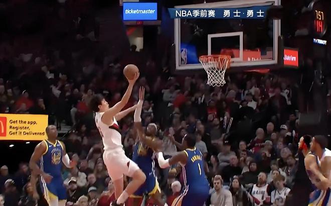 次节比赛回来,两队的对抗强度进一步提升。霍福德底角三分命中,夏普漂移上篮,格兰特反击三分,开拓者将分差拉开到两位数,勇士赶紧请求暂停。暂停回来,杨瀚森再度登场,勇士队进攻端仍旧没有太好的感觉,夏普突破打成2+1,分差来到18分。杨瀚森底角接球,一个漂亮的假动作,晃飞霍福德,突入禁区上篮命中!随后掩护阿夫迪亚完成精彩上篮。