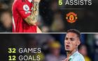 • 安东尼在皇家贝蒂斯32场参与18球,已超过曼联生涯96场的数据